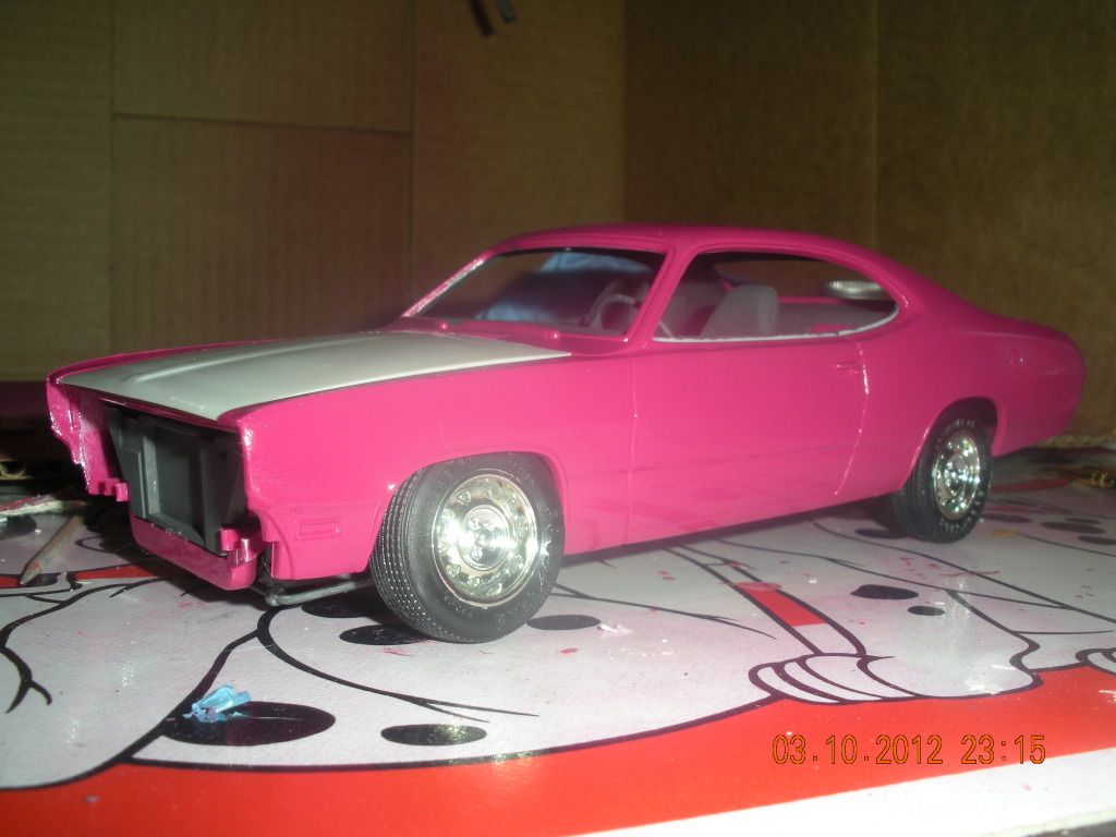 And yes... it is PANTHER PINK!!! lol Had to go with one of the crazy Mopar colors and the pink spoke to me lol. Now Its not gonna be as awesome as all y'alls. I started out with no airbrush because I accidentally left my airbrush hooked to the propellant and had no air when I got this kit... oops. So everything up to the body was done with a brush.